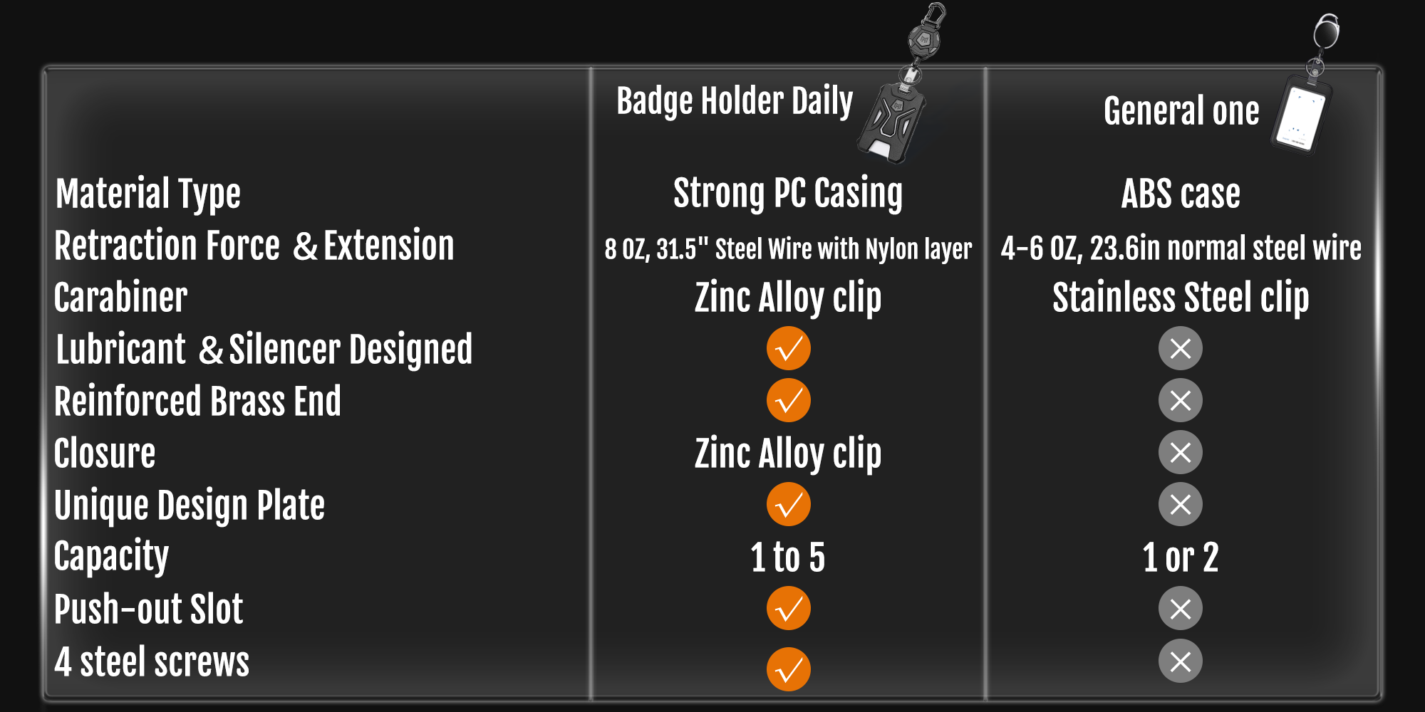 Our retractable ID holders use ABS shells and iron badges clips, and its powerful impact performance can keep you away from fragile plastic.