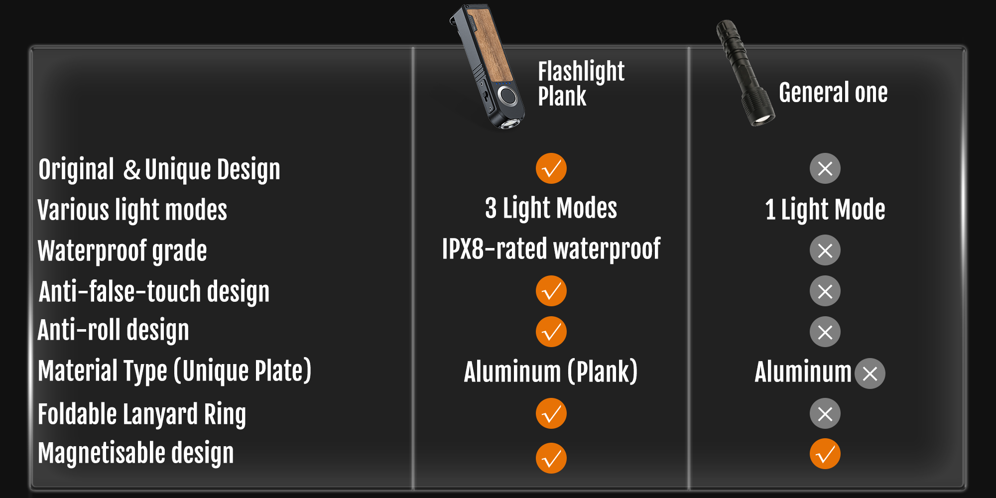 Perfect for extreme conditions, one-piece seamless molding and can be submerged in 2 meters of water for 30 minutes. The torch performs well even in the pouring rain.